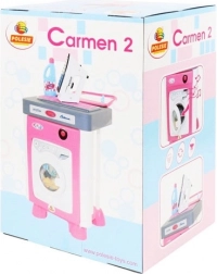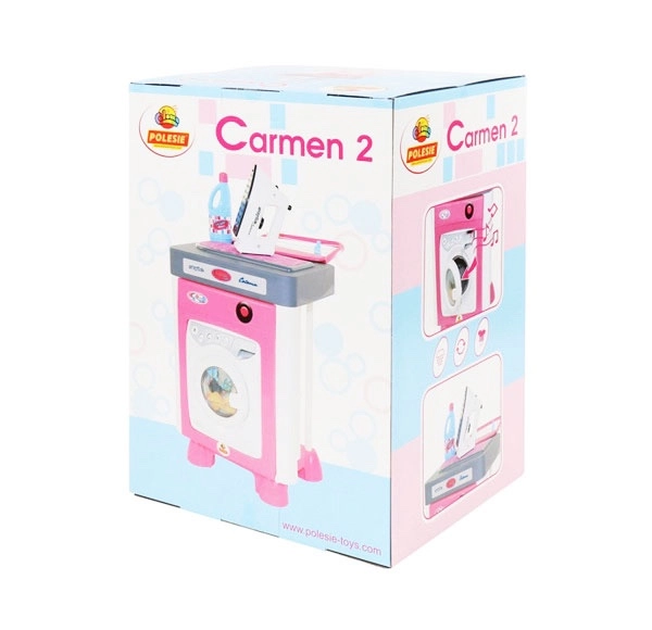 Ta stylowa dziecięca pralka CARMEN 2 zapewnia dzieciom zabawną i realistyczną zabawę w dom. Przednie drzwiczki otwierają się i zamykają z sygnałem dźwiękowym, po wyborze programu bęben zaczyna się obracać, a w tle słychać dźwięki pracy. Cały zestaw wspiera wyobraźnię, małą motorykę oraz rozwój codziennych umiejętności.