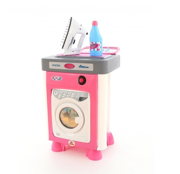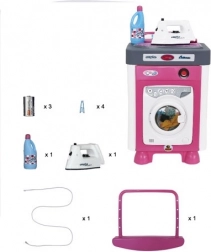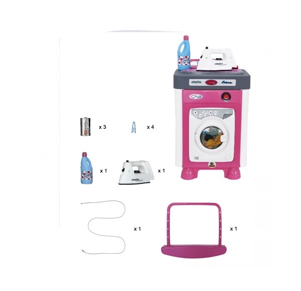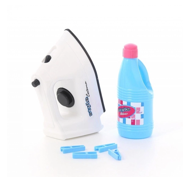 W opakowaniu znajduje się pełne wyposażenie dla małych pomocników: panel do zabawy/deska do prasowania z tekstylną powierzchnią do bezpiecznego „prasowania”, dziecięce żelazko, wieszak/suszak na pranie ze sznurkiem oraz 4 klamerki. Dzięki dołączonym bateriom można zacząć zabawę od razu po rozpakowaniu.