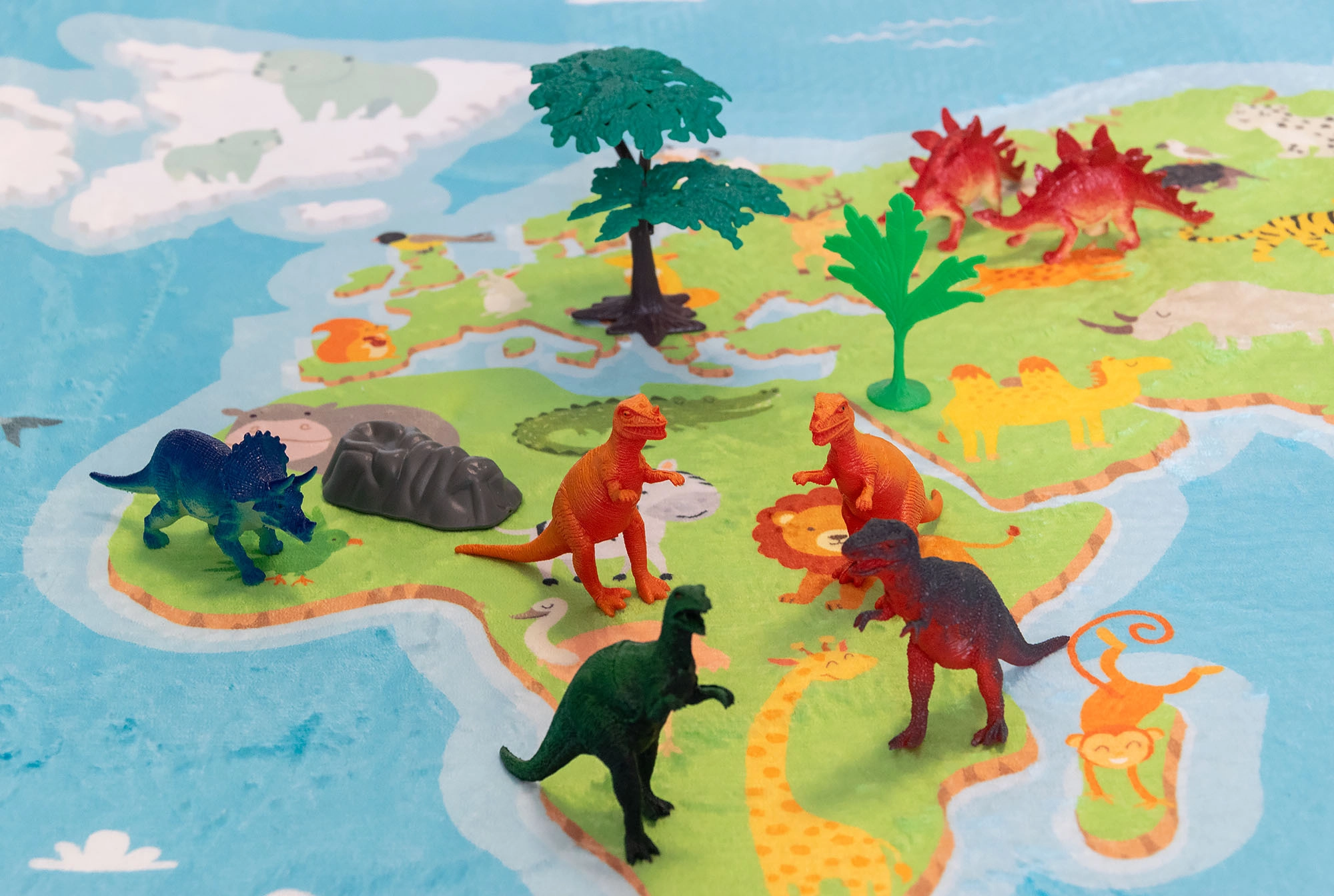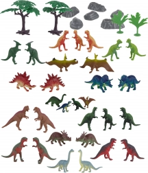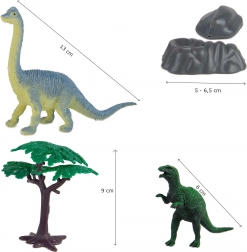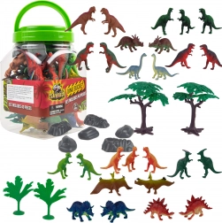 Różnorodny wybór dinozaurów, drzew i kamieni pozwala dzieciom tworzyć własne prehistoryczne sceny oraz rozwijać wyobraźnię i wytrwałość w zabawie.