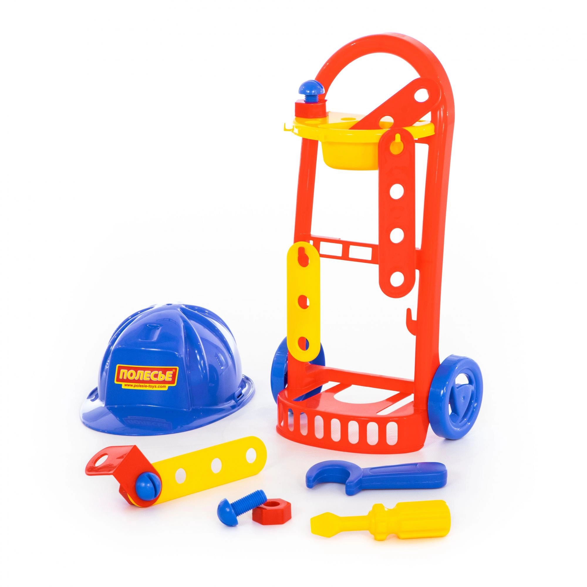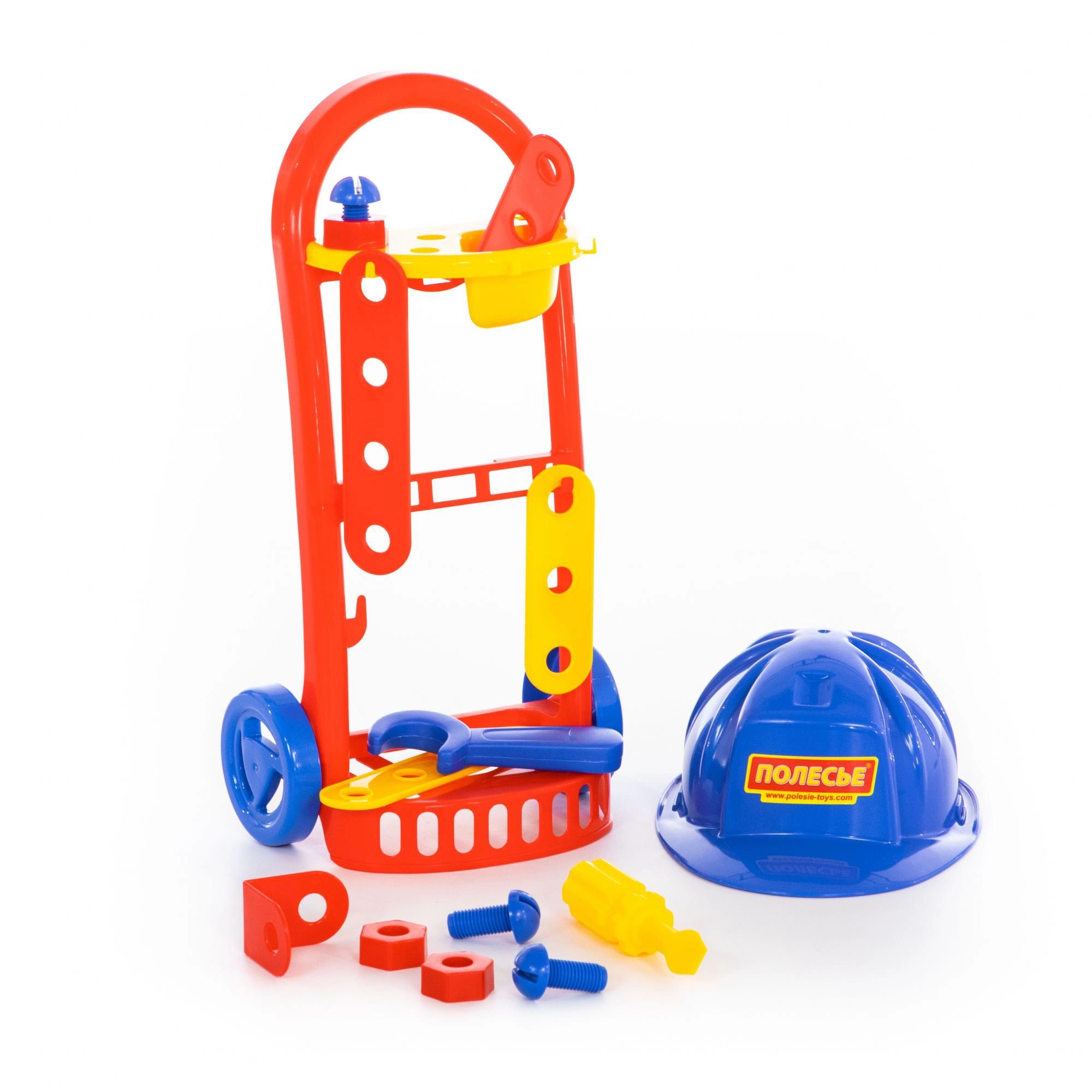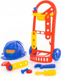 Zawartość zestawu może obejmować np. klucz, śrubokręt, młotek, śrubki i nakrętki – wszystko do wesołej i pouczającej zabawy w domu.