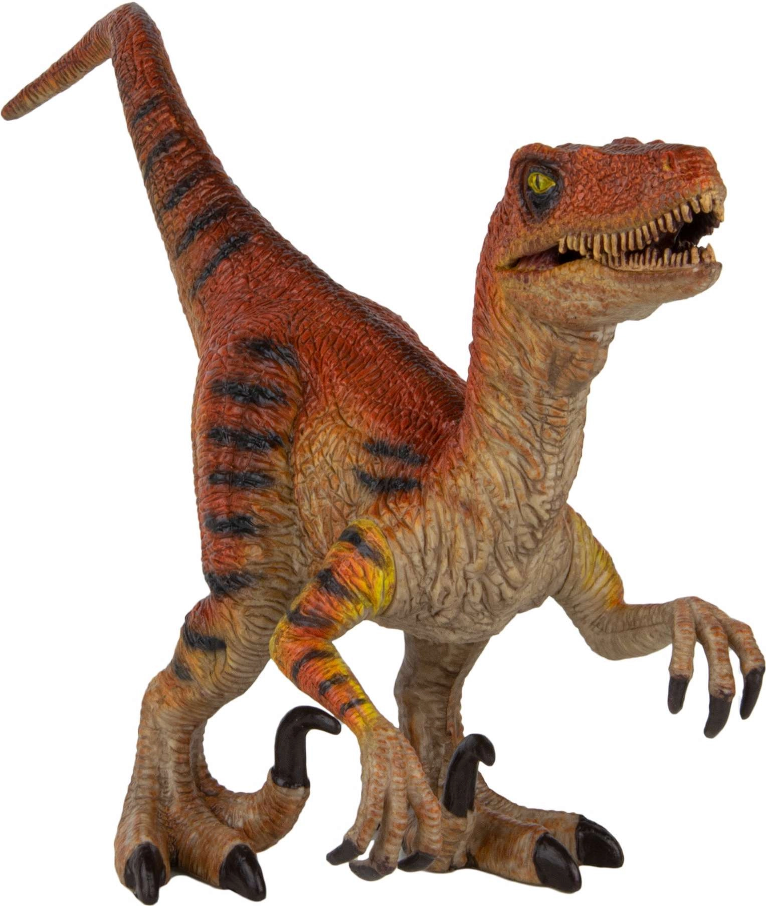 Ta realistyczna figurka Velociraptora ucieszy małych i dużych miłośników prehistorii. Precyzyjna faktura powierzchni, pomarańczowo‑brązowe ubarwienie z czarnymi paskami oraz wyraziste detale zębów i pazurów prezentują się wyjątkowo wiarygodnie. Ruchoma szczęka i przednie łapy zwiększają interaktywność i rozwijają dziecięcą wyobraźnię.