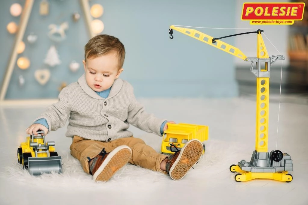 Idealny do zabawy w domu i w piaskownicy. Dzieci mogą wcielać się w role kierowników budowy, operatorów koparki czy dźwigu i ćwiczyć współpracę zespołową.