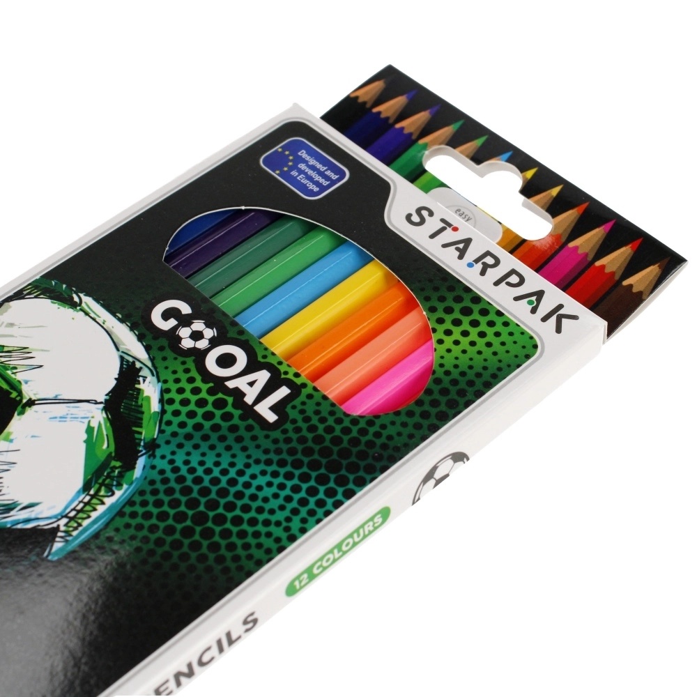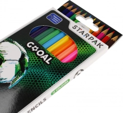 Odkryj radość rysowania z zestawem 12 kolorowych kredek z motywem piłki nożnej. Dzięki sześciokątnemu profilowi kredki wygodnie leżą w dłoni, mniej się turlają ze stołu i umożliwiają precyzyjną pracę oraz delikatne cieniowanie. Wstępnie zaostrzone rdzenie i nasycone pigmenty gwarantują piękne, równomierne krycie.