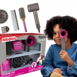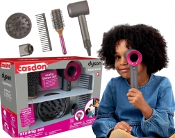 Dziecięcy zestaw fryzjerski CASDON z kultową suszarką Dyson Supersonic zapewnia dzieciom autentyczne wrażenia jak w salonie. Zabawka dmucha powietrzem, ma efekty świetlne i dzięki magnetycznym/wymiennym nasadkom pozwala zmieniać styl suszenia. Dołączone: okrągła szczotka i szeroki grzebień, które pobudzają wyobraźnię przy tworzeniu fryzur dla dzieci, lalek i przyjaciół.