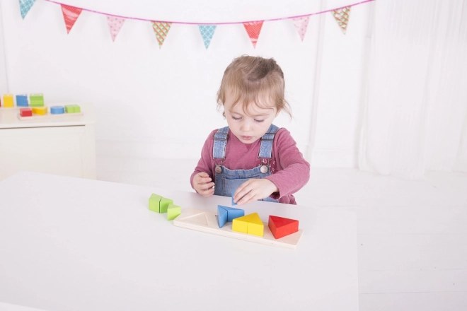 Stabilna drewniana podstawa i wygodne, większe elementy są idealne dla małych rąk. Powtarzane wkładanie wspiera małą motorykę, cierpliwość i myślenie logiczne, a jednocześnie wzmacnia pierwsze umiejętności matematyczne oraz wyobraźnię przestrzenną.