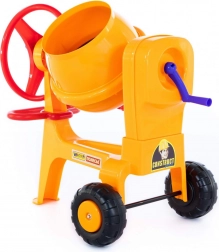 Dziecięca betoniarka marki WADER to realistyczna zabawka, dzięki której dzieci mogą poczuć się jak mali budowniczowie. Posiada obrotowy bęben mieszający napędzany korbką, mechanizm przechyłu z blokadą oraz ruchome koła. Nadaje się do zabawy w domu i na piasku, a także jest certyfikowana od 1. roku życia.