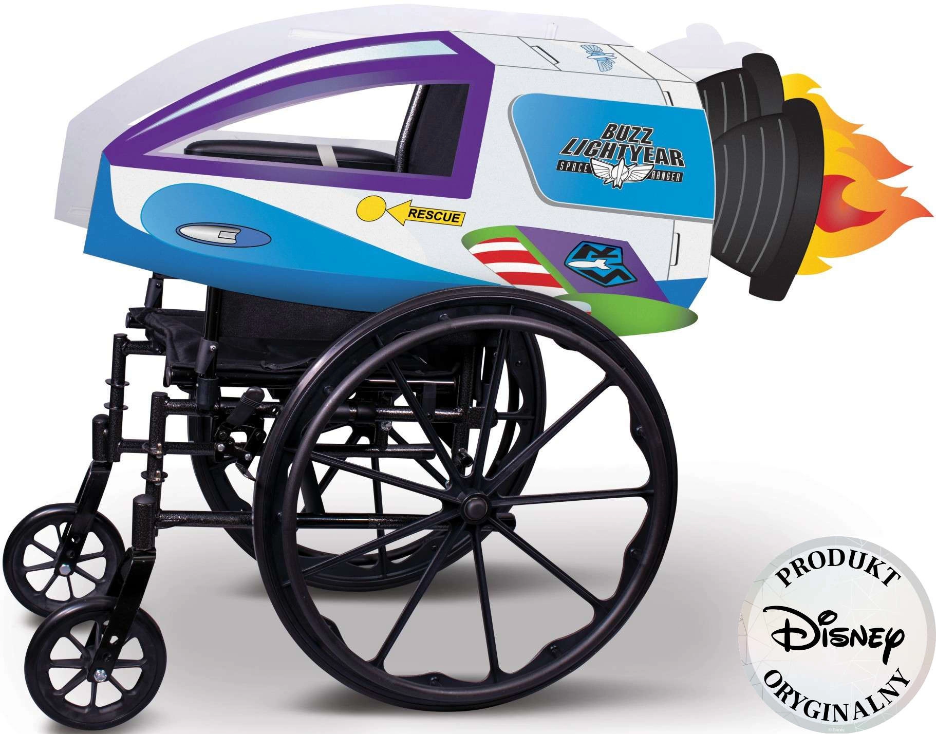 Dziecięcy kostium na wózek inwalidzki inspirowany filmem TOY STORY zamienia wózek w rakietę Buzza Astrala. Lekkie filcowe wykonanie, łatwy montaż i kompatybilność z kołami o średnicy 24" (61 cm). Idealny na bal przebierańców, karnawał i zabawę w domu. Oficjalna licencja DISNEY marki Disguise.