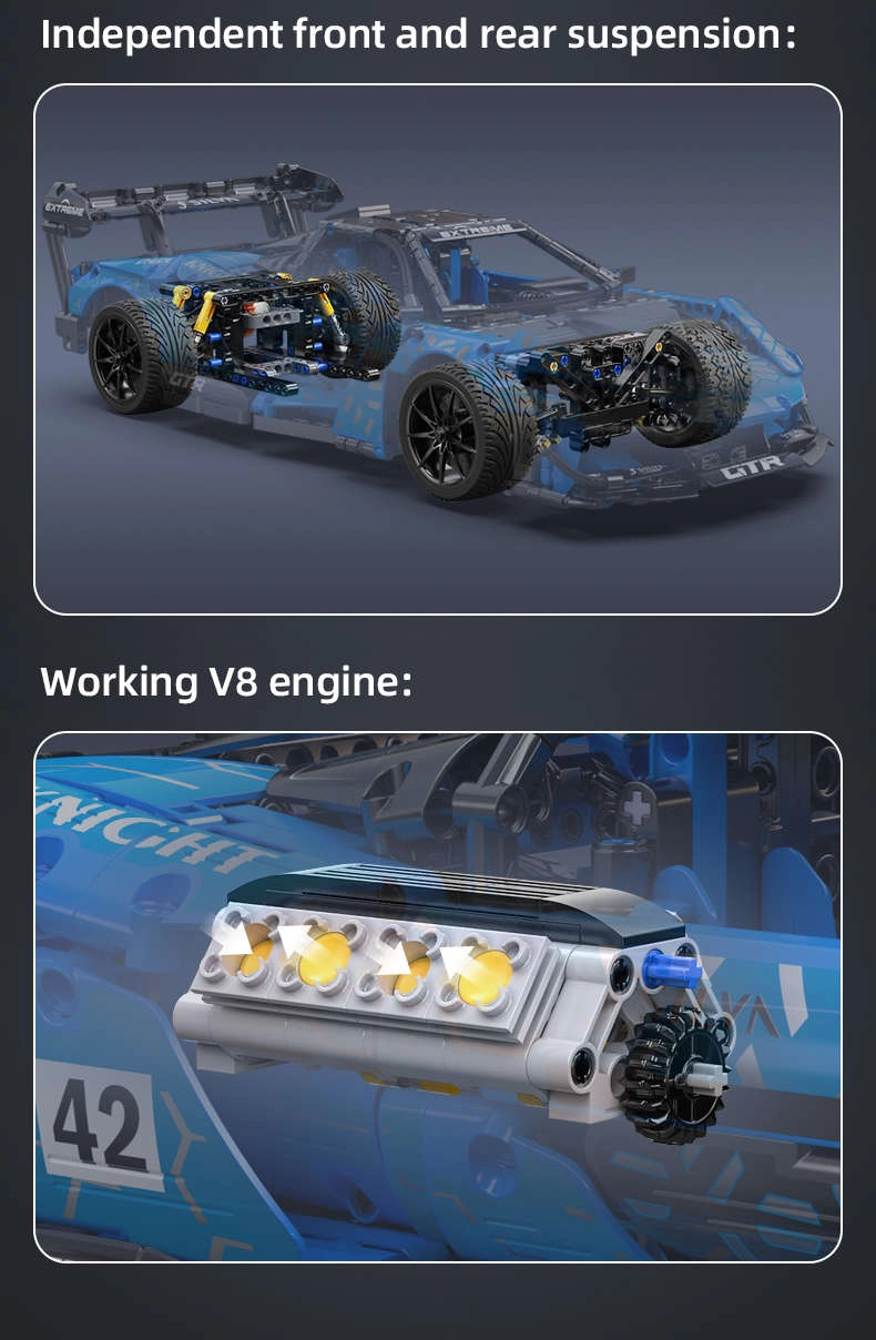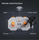 Model można rozbudować o komponenty RC (nie zawarte w opakowaniu): bateria 7,4 V, pilot zdalnego sterowania, silnik L pro, serwosilnik pro oraz oświetlenie LED. Po dodaniu RC pojedzie do przodu/tyłu, skręci w lewo/prawo i umożliwi włączanie i wyłączanie przednich oraz tylnych świateł. Drzwi otwierają się do góry i zamykają za pomocą obrotowego pokrętła. W zestawie jest przejrzysta instrukcja krok po kroku, więc z modelem poradzą sobie także młodsi konstruktorzy z pomocą dorosłych.
