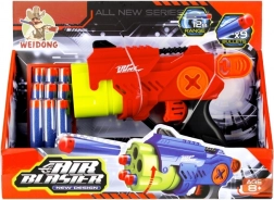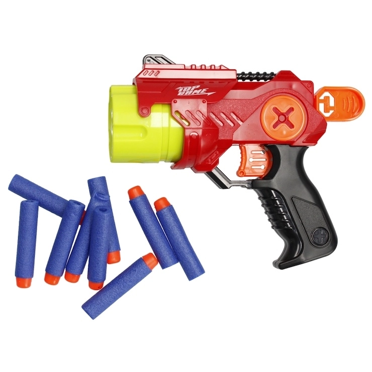 Zawartość opakowania obejmuje pistolet i 9 piankowych strzałek, co stanowi perfekcyjny zestaw startowy do zawodów w celności i szybkości. Do wyboru są dwa atrakcyjne kolory – czerwony i niebieski. Zabawka przeznaczona jest dla dzieci od 8 lat i zapakowana w pudełko z okienkiem, dzięki czemu świetnie nadaje się na prezent.