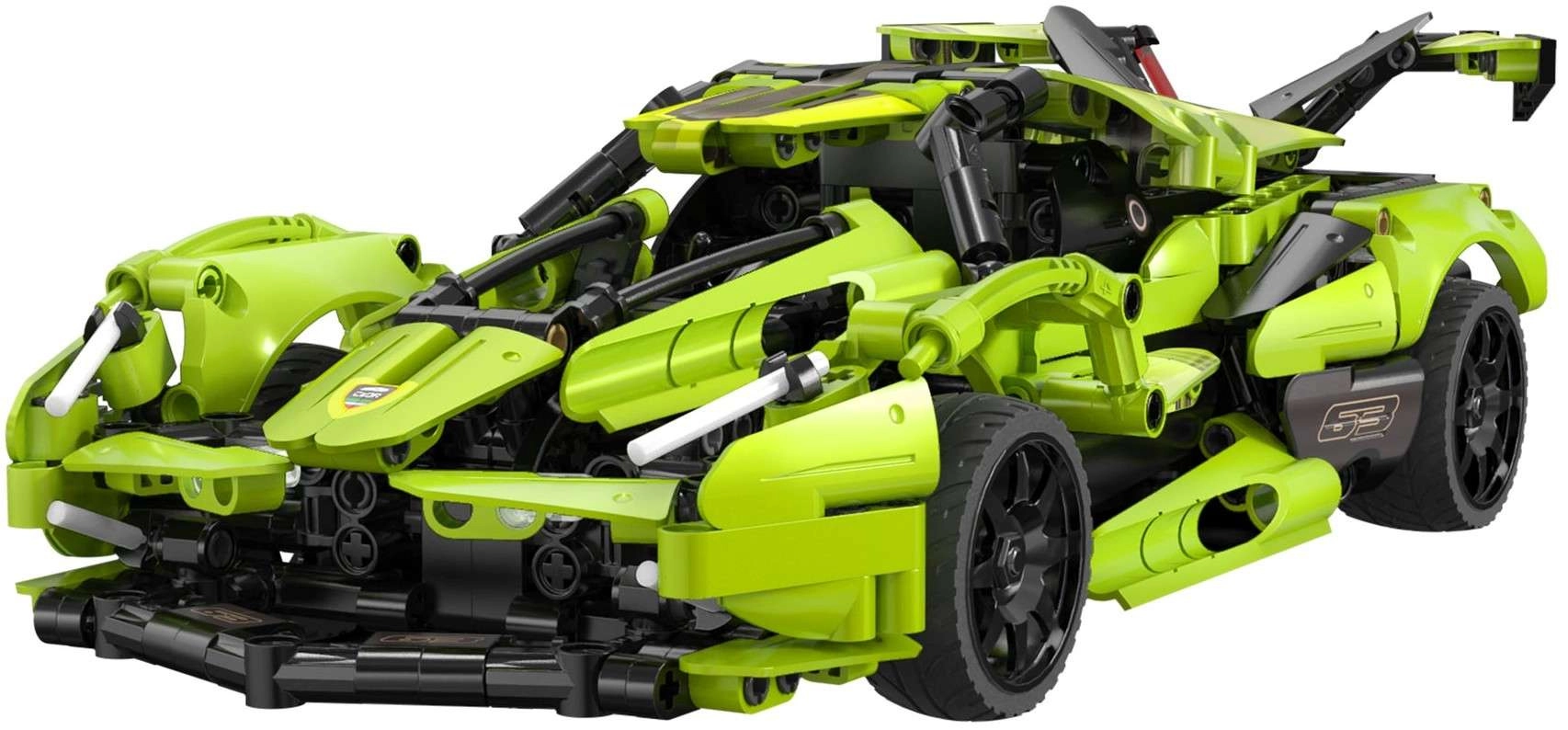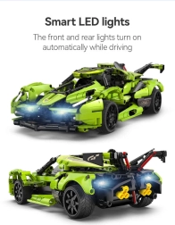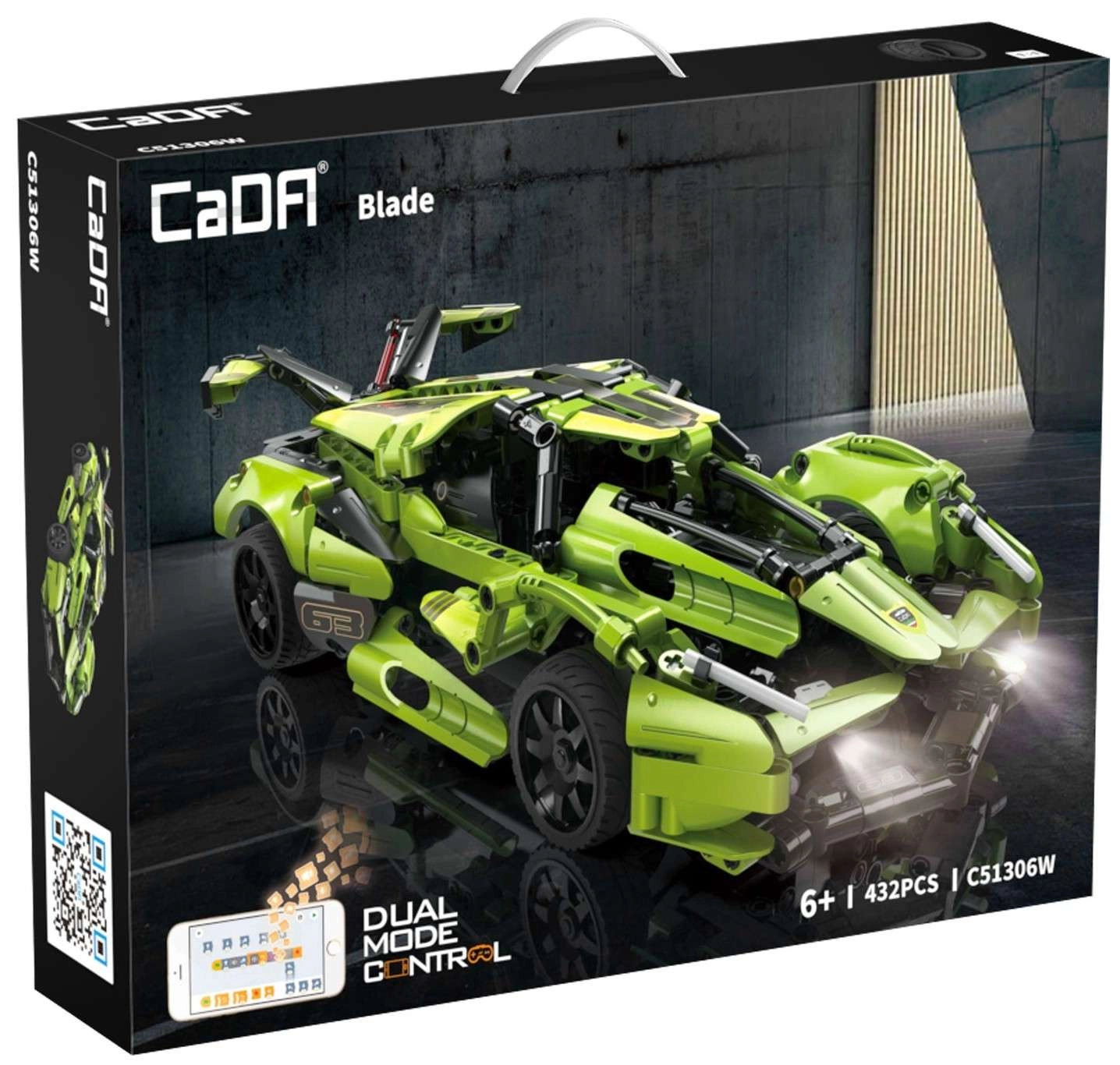 Zbuduj własny zielony samochód sportowy Blade marki CaDA i steruj nim zdalnie za pomocą pilota RC 2,4 GHz lub aplikacji Bluetooth. Zestaw zawiera 432 elementy, działające przednie i tylne światła LED, gumowe koła do jazdy po różnych nawierzchniach oraz zasięg sterowania ponad 25 metrów. Maksymalna prędkość do 5,5 km/h i eleganckie opakowanie czynią z tego zestawu świetny prezent dla małych i dużych konstruktorów.