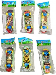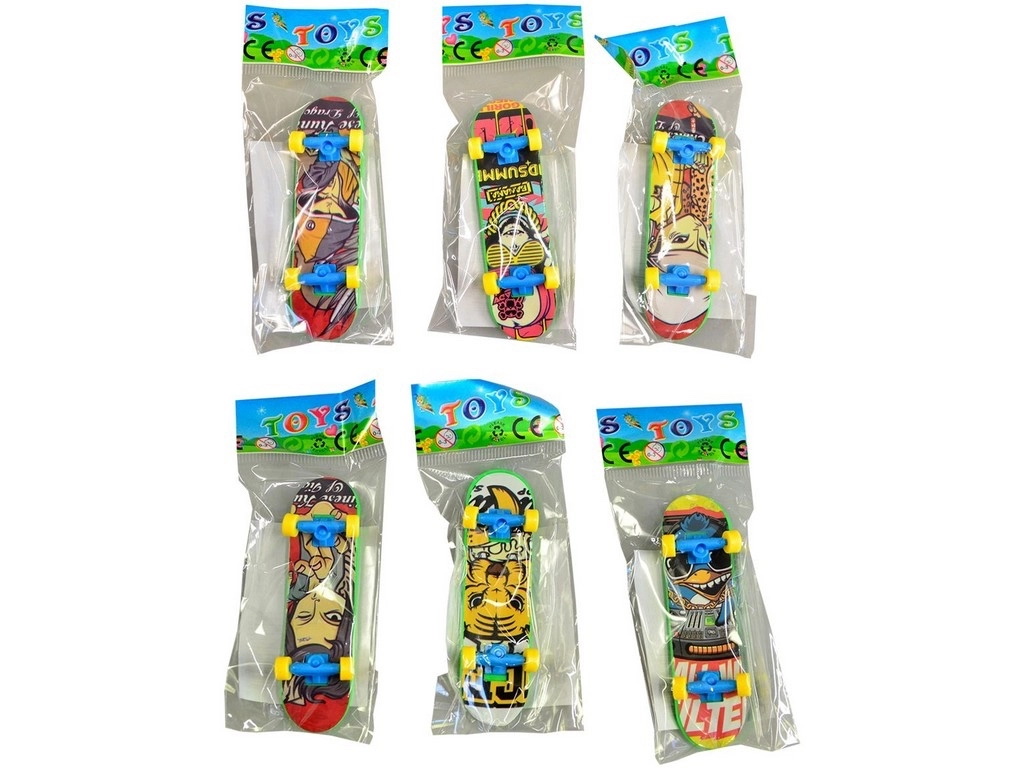 Zabawna palcowa deskorolka dla małych i dużych fanów fingerboardingu. Kompaktowy rozmiar 9 cm, odpowiednia od 3 lat, dostępna w 6 różnych wariantach do kolekcjonowania i zabawy. Świetna zabawka rozwijająca małą motorykę i kreatywność.