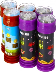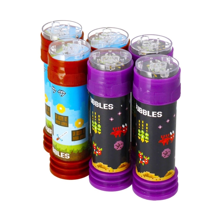 Zabavne bańki mydlane Pixel ucieszą dzieci i dorosłych. Tworzą piękne bańki, a w nakrętce mają mini grę – labirynt – dla dodatkowej zabawy. Idealne na imprezy plenerowe, urodziny i festiwale. Pojemność 55 ml, kompaktowa wysokość 11 cm, od 3 lat.
