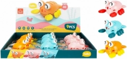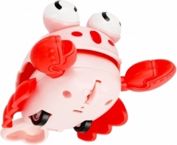 Rozkręć dziecięcą zabawę z wesołym krabem na kółkach. Dzięki prostemu mechanicznemu mechanizmowi wystarczy nacisnąć kraba na grzbiecie, a pojedzie do przodu. Zabawka jest bezpieczna, nie wymaga baterii i wspiera aktywną zabawę oraz koordynację ręka–oko.
