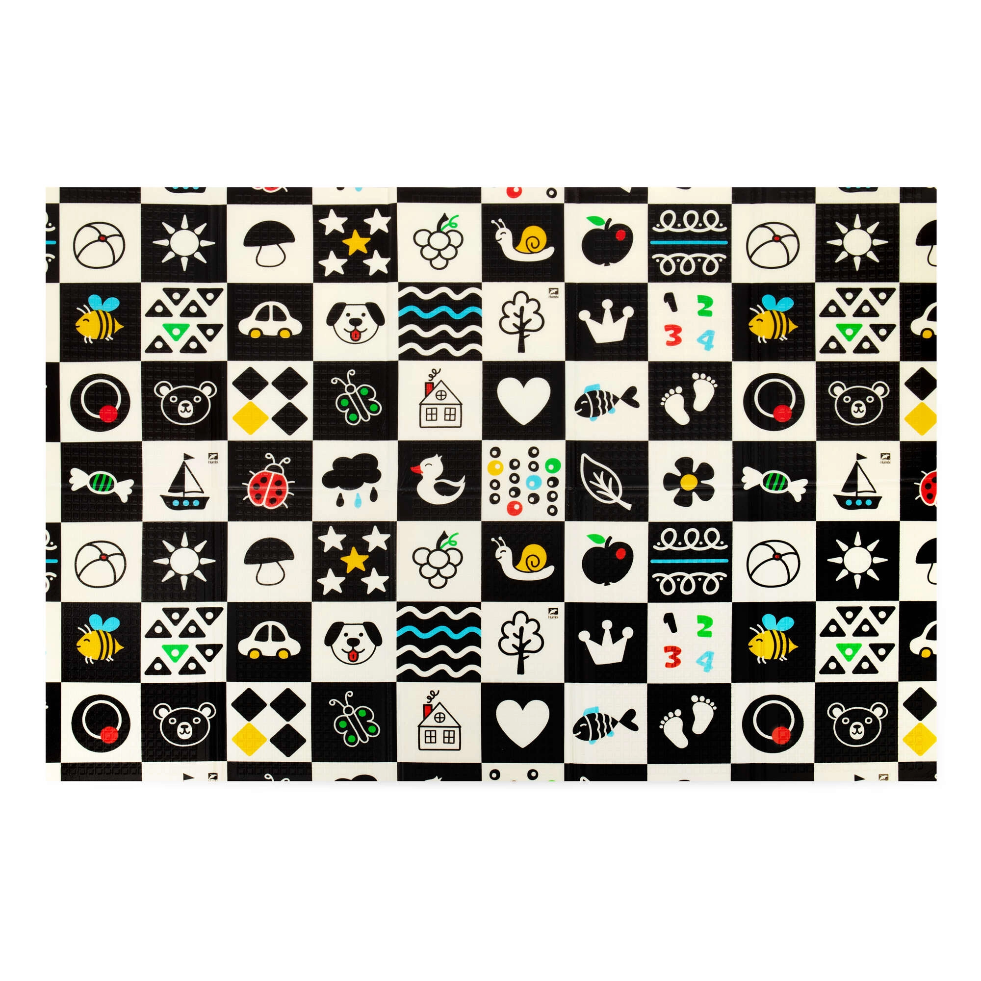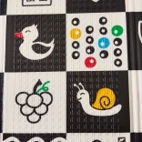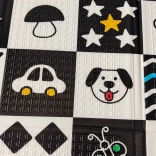 - Dwustronne: kolorowy alfabet (DE) / czarno-białe motywy kontrastowe