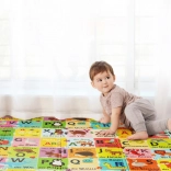 - Design 2w1: kolorowa strona z alfabetem i zwierzątkami + kontrastowa czarno-biała strona z ikonami.