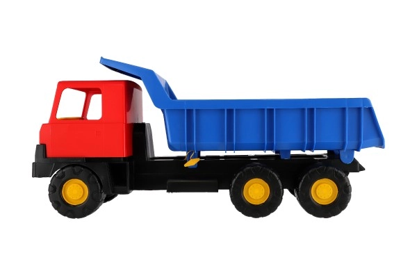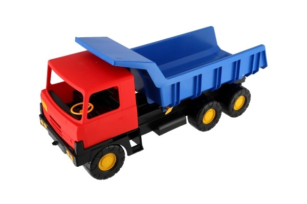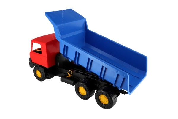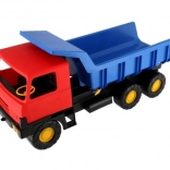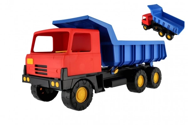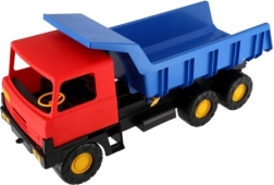 Połączenie niebieskiej wywrotki i czerwonej kabiny pobudza wyobraźnię i zachęca do zabawy w domu i na dworze.