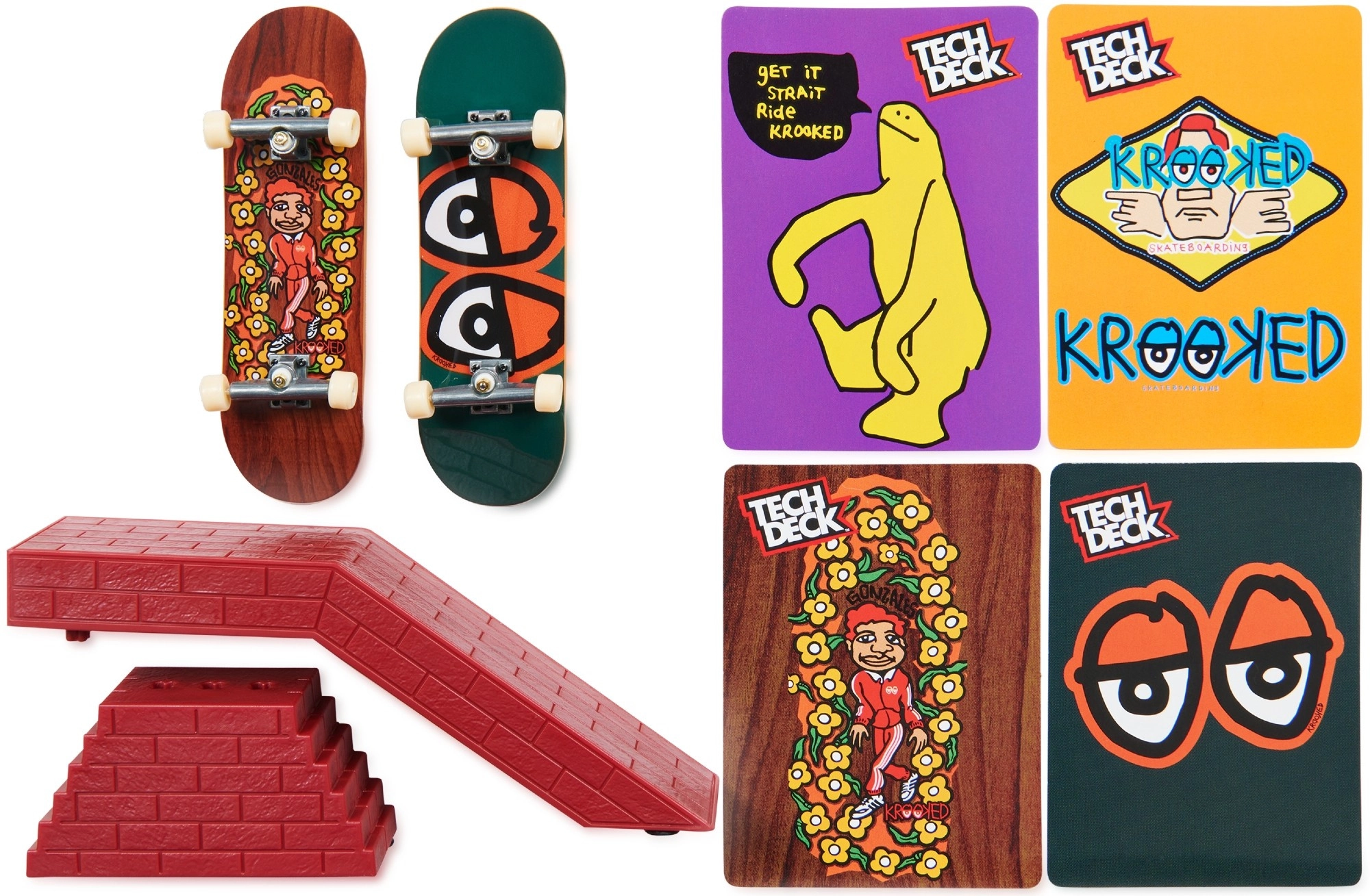 Zestaw TECH DECK VS Series Krooked zapewnia realistyczne wrażenia z fingerboardingu dla początkujących i zaawansowanych. Dwie precyzyjnie wykonane mini deskorolki z metalowymi truckami i funkcjonalnymi kółkami uzupełnia ceglana rampa z przeszkodą, na której łatwo przećwiczysz grindy, ollie i inne ulubione triki.