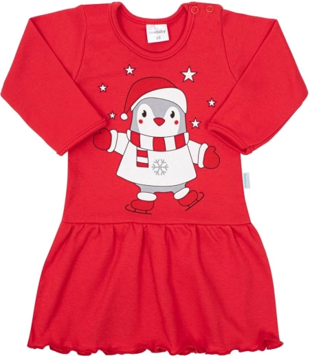 Urocza dziecięca sukienka z opaską NEW BABY Winter Penguin zachwyci każdą małą elegantkę. Wykonana z przyjemnej 100% bawełny, ma długi rękaw, praktyczne zapięcie na napę na ramieniu i zdobi ją wesoły motyw pingwinka w pięknym czerwonym kolorze. W zestawie znajduje się elastyczna opaska, która świetnie dopasowuje się do główki.