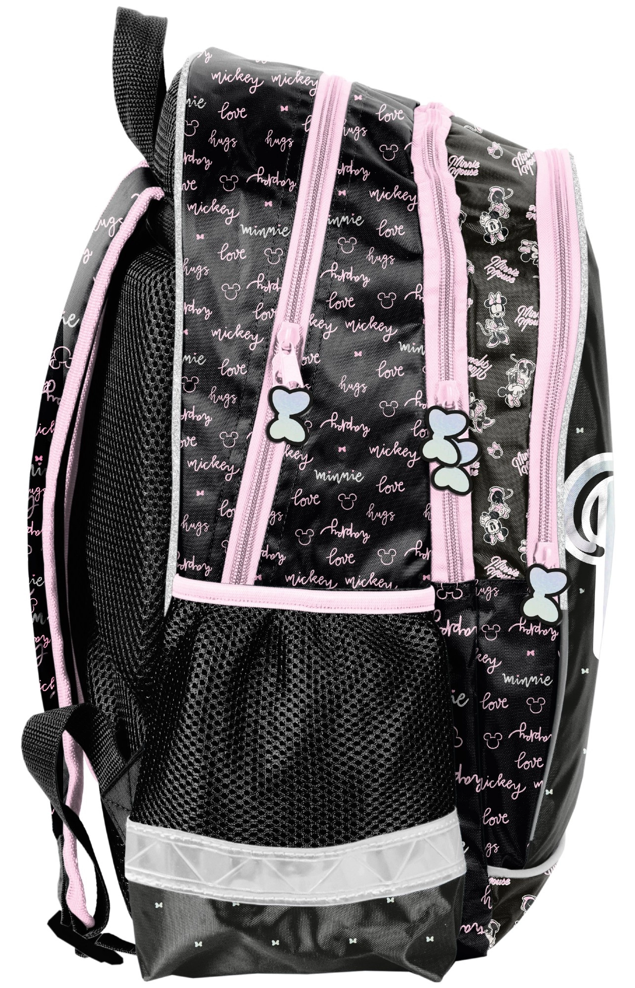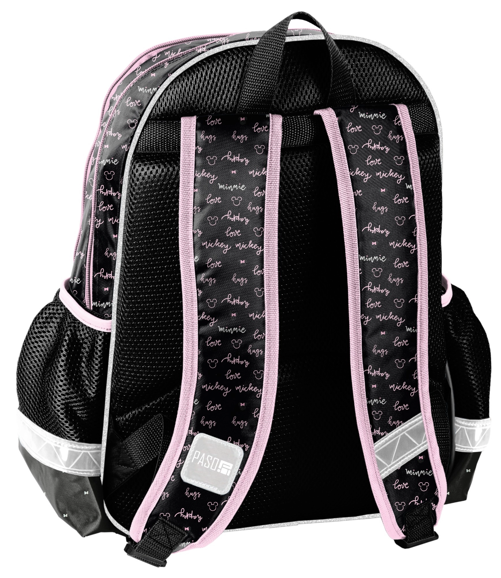 Popularny plecak dziewczęcy z dekoracyjnymi akcentami MINNIE łączy atrakcyjny design i funkcjonalny komfort na każdy szkolny dzień. Dzięki miękkiej piance plecy przyjemnie się dopasowują, a jednocześnie utrzymują prawidłową postawę. Wytrzymały, lekko wodoodporny materiał chroni zawartość także przy gorszej pogodzie.