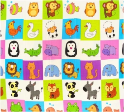 Z jednej strony urocze żyrafy, z drugiej barwna mozaika zwierzątek. Pobudza percepcję wzrokową i nadaje wnętrzu radosny charakter.