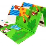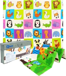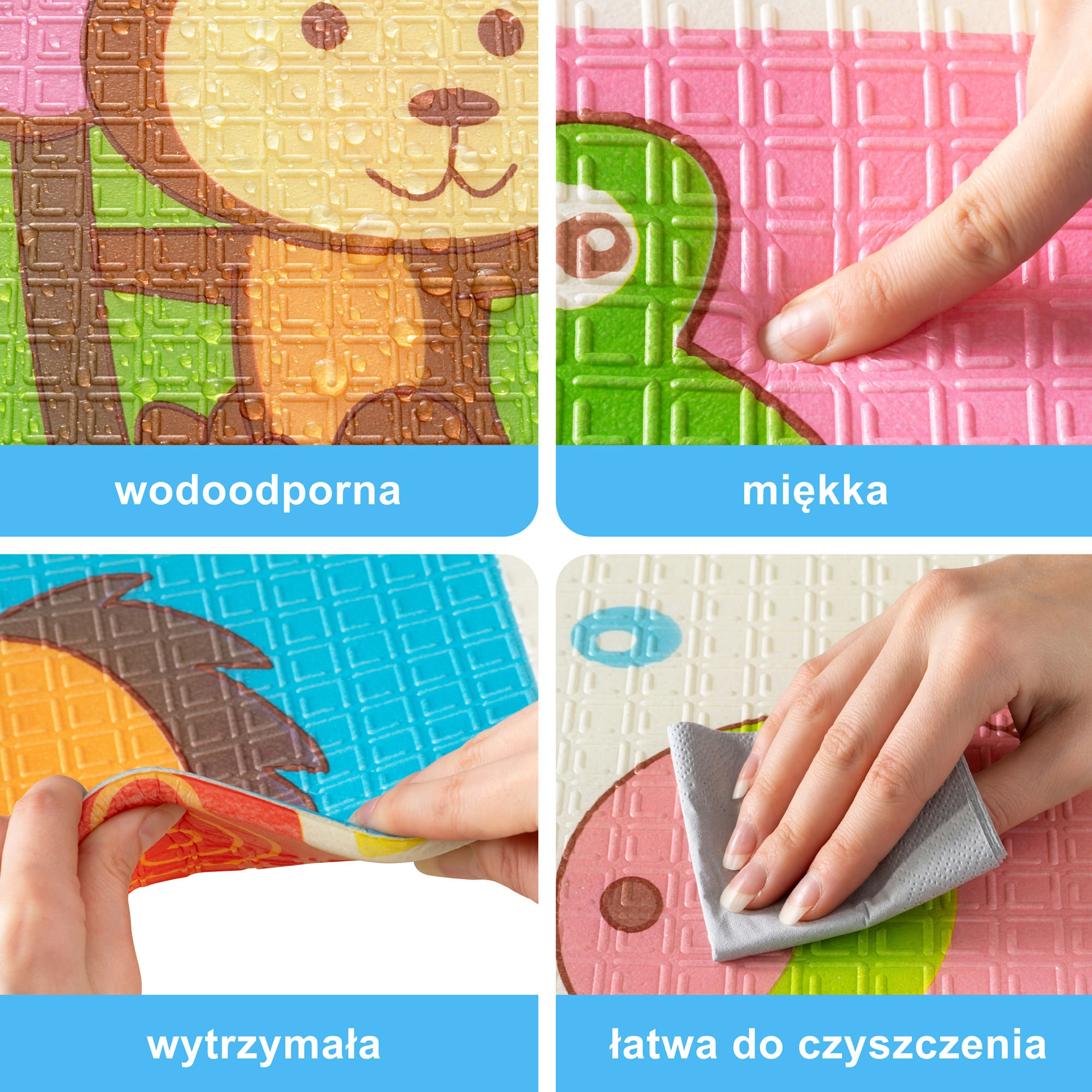 Mata jest hipoalergiczna, bezzapachowa i nie zawiera formamidu, ftalanów, PVC ani BPA. Antypoślizgowe, delikatnie strukturyzowane wykończenie pomaga w bezpiecznym raczkowaniu i chodzeniu. Składana konstrukcja umożliwia błyskawiczne złożenie i kompaktowe przechowywanie pod łóżeczkiem lub między meblami; całość uzupełnia zamykana torba transportowa.