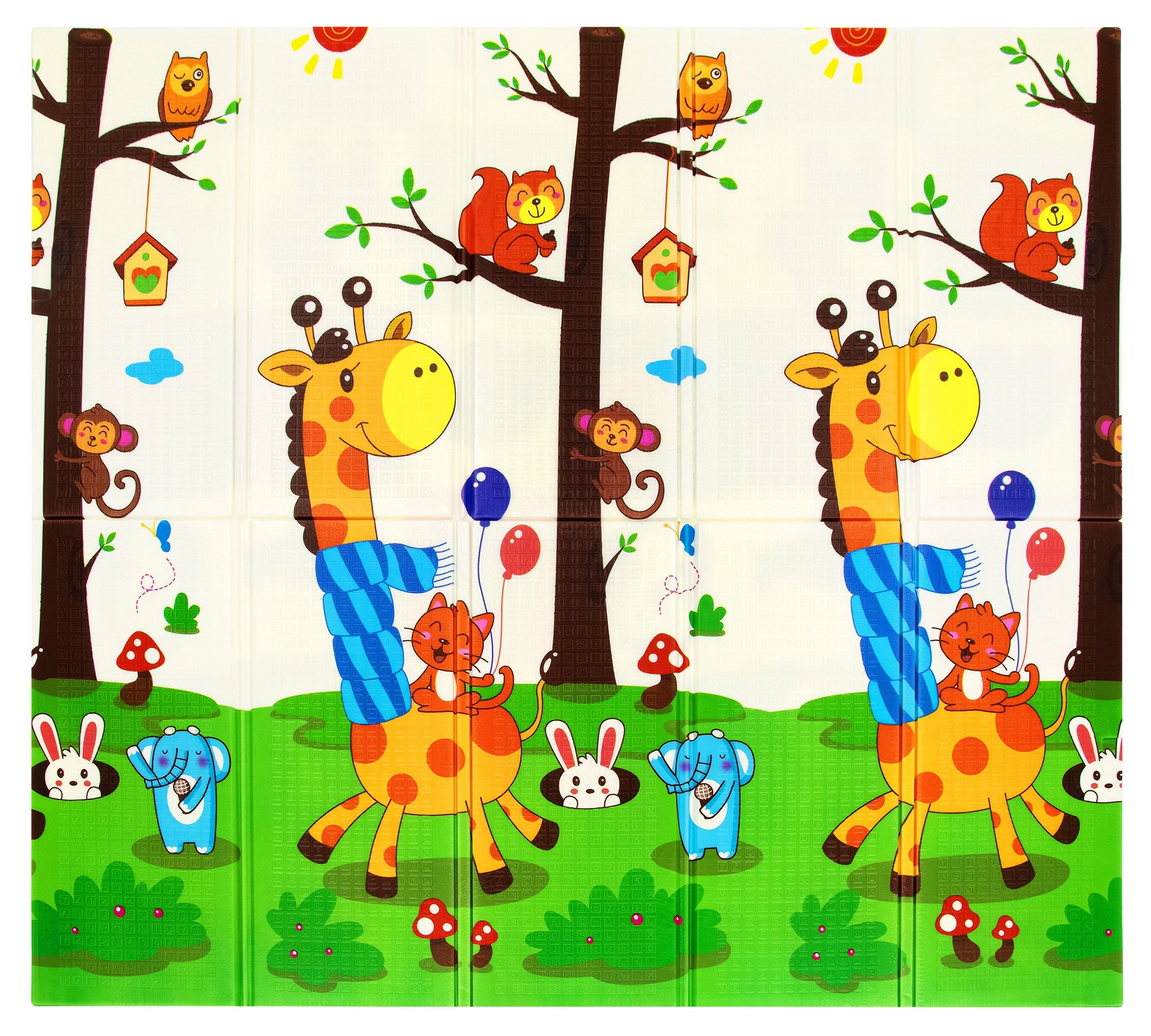 Wysokiej jakości pianka XPE zapewnia macie HUMBI znakomitą amortyzację wstrząsów, izolację termiczną od chłodnej podłogi i długą żywotność. Dwustronny design z żyrafami i siatką zwierzątek wspiera rozwój sensoryczny i stanowi estetyczny dodatek do pokoju dziecięcego i salonu.