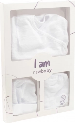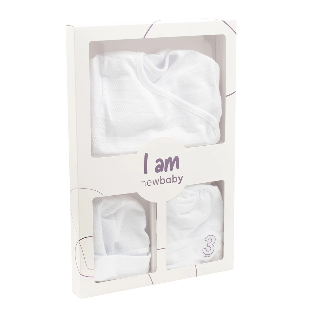 Ten noworodkowy zestaw NEW BABY I AM został zaprojektowany z myślą o wrażliwej skórze maluszka. Delikatna i oddychająca bawełna zapewnia całodzienny komfort, a praktyczne detale ułatwiają codzienne przewijanie i ubieranie. Neutralny biały kolor i czysty design pasują zarówno dla dziewczynek, jak i chłopców.