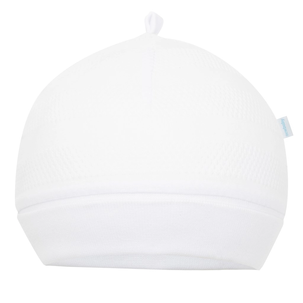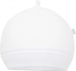 Miękki materiał i szeroki ściągacz dobrze trzymają, nie spadają i delikatnie chronią główkę noworodka przed chłodem.