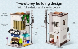 Ten elegancki zestaw CaDA oddaje autentyczną atmosferę japońskich uliczek. Dwupiętrowy sklep z parowanymi bułeczkami zachwyca realistyczną fasadą, funkcjami umożliwiającymi łatwy dostęp do wnętrza oraz modułem LED, który nadaje modelowi wyjątkowy wieczorny klimat.