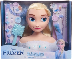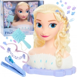 Ta luksusowa głowa do stylizacji Elsy z uwielbianej bajki Disney Frozen daje dzieciom nieskończone możliwości tworzenia fryzur. Długie blond włosy można łatwo szczotkować, zaplatać i dekorować dołączonymi ozdobami. Realistyczne detale twarzy i delikatny makijaż oczu potęgują magiczne wrażenia z zabawy.