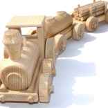Pociąg ma zaokrąglone krawędzie oraz ruchome elementy, takie jak obracające się kółka, co zwiększa interaktywność i bezpieczeństwo zabawy. Nadaje się także do zabawy w piaskownicy.