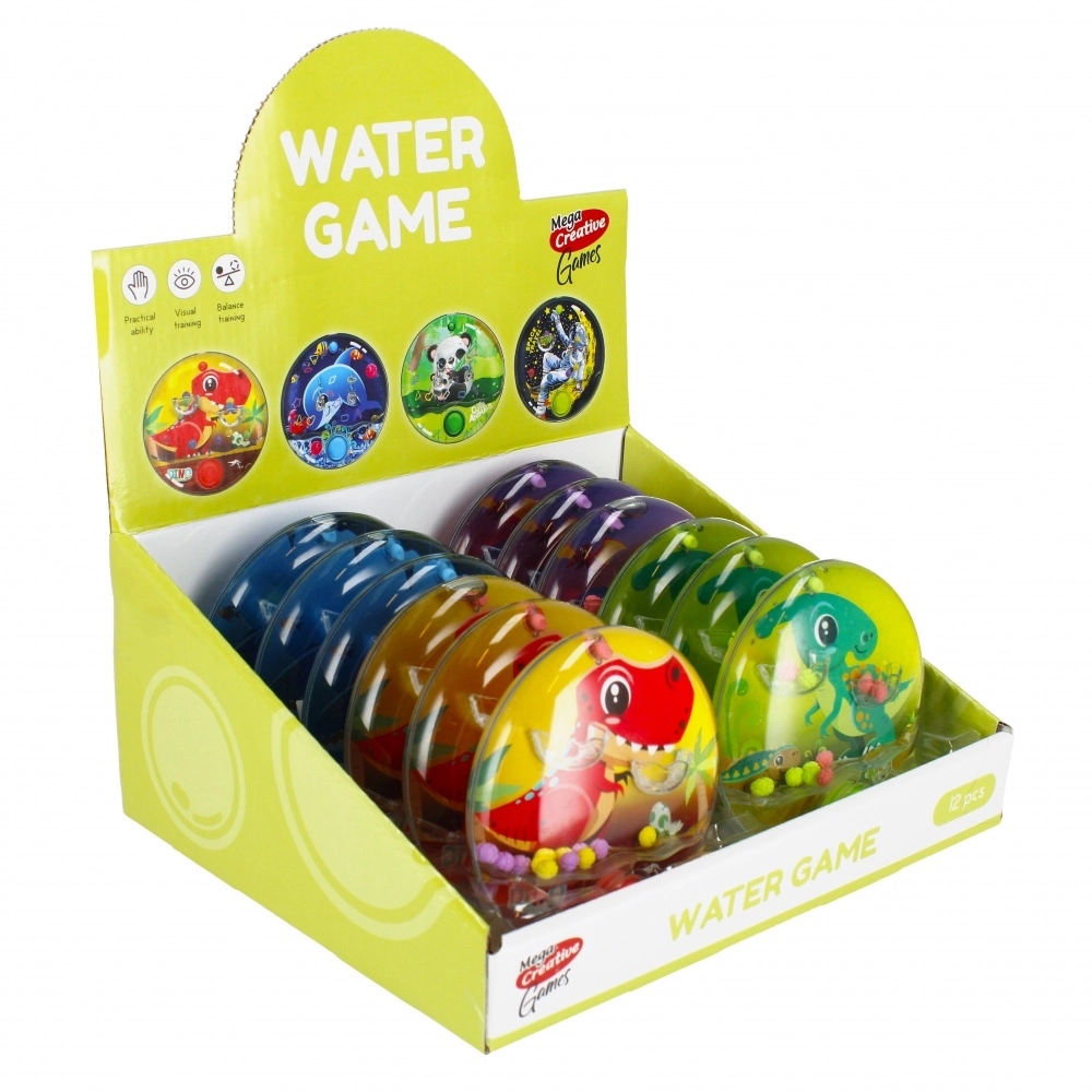 Wodna gra Dino to klasyczna kieszonkowa zręcznościówka, która zapewni dzieciom rozrywkę zawsze i wszędzie. Jednym przyciskiem wprawisz kuleczki w ruch i celowo pokierujesz je do koszyczków. Bez elektroniki, bez baterii – czysta zabawa z wodą, która rozwija cierpliwość i koordynację oko–ręka.