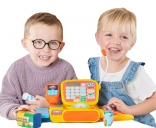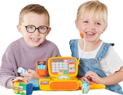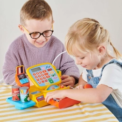 Przejrzysta klawiatura z funkcjami kalkulatora i kategoriami towarów ułatwia sumowanie zakupów oraz ćwiczy liczenie i myślenie logiczne.