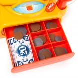 Szuflada na pieniądze ma przegródki na banknoty i monety, dzięki czemu dzieci mogą je sortować i bezpiecznie przechowywać. Otwiera się przyciskiem jak w prawdziwej kasie.