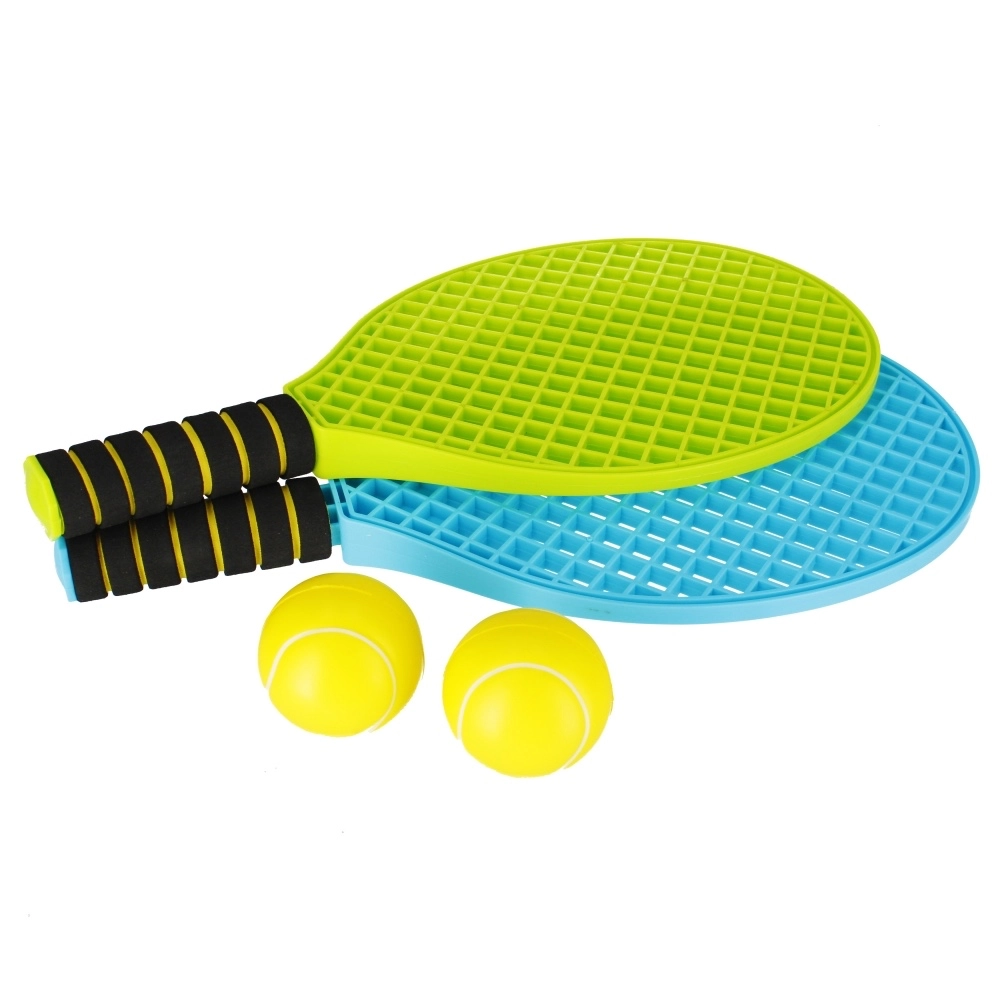 Plastikowe rakiety z ażurową główką są idealne do nieskomplikowanej zabawy na zewnątrz i łatwych odbić nawet dla początkujących.