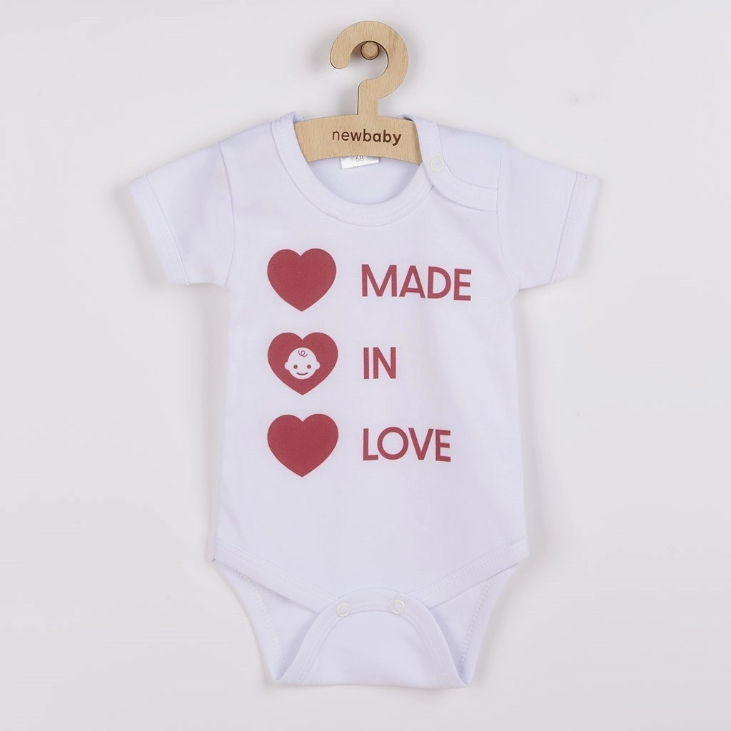 Stylowe i delikatne body dla niemowląt New Baby MADE IN LOVE to idealny pierwszy strój oraz miły prezent do wyprawki. Dzięki wysokiej jakości bawełnianej dzianinie jest przyjemne w dotyku, świetnie oddycha i nie podrażnia wrażliwej skóry noworodków.