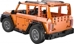 Technologia Dual Mode daje wybór między pilotem 2,4 GHz a aplikacją Bluetooth dla Android/iOS. Model wyróżnia się realistycznymi detalami – gumowe koła dla pewnej przyczepności na różnych powierzchniach, wyrazista pomarańczowa karoseria z czarnymi elementami i trwała konstrukcja z kompatybilnych klocków CADA.