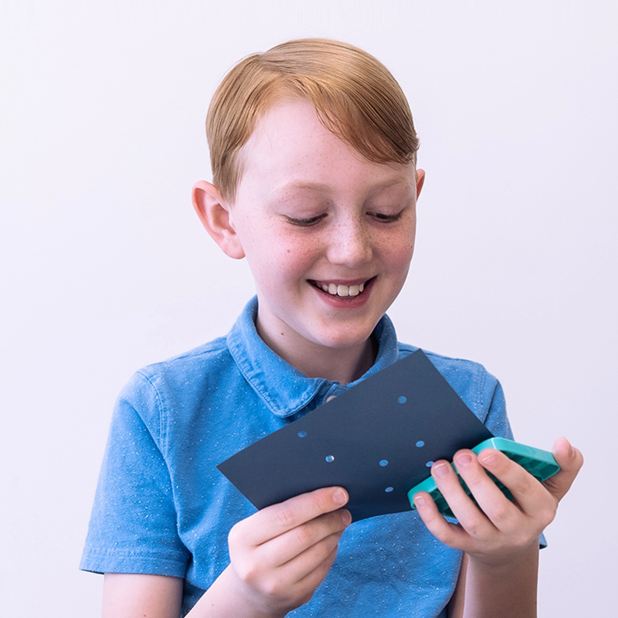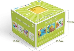 W opakowaniu znajdziesz dziurkacz, 99 klocków, 2 szablony i 6 kart. Wystarczy dziurkować, wypełnić otwory klockami i stworzyć własny projekt.