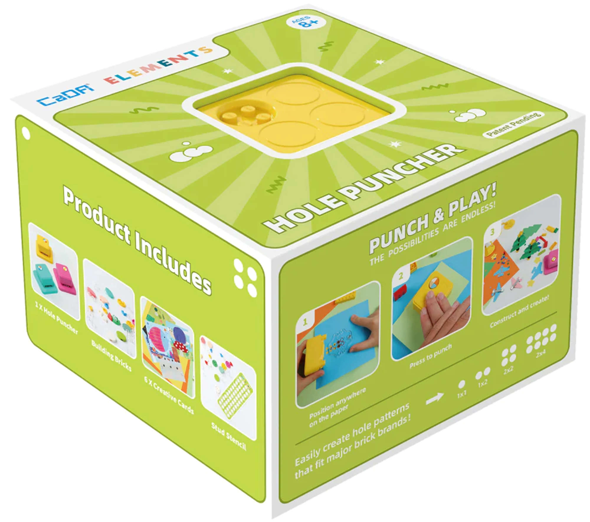 Regulowany żółty dziurkacz CaDA to sprytne kreatywne narzędzie, które pozwala dzieciom tworzyć oryginalne wzory w papierze, a następnie wypełniać je kolorowymi klockami. Przezroczysta magnetyczna podkładka zapewnia precyzyjne wyrównanie i wygodne użytkowanie. Zestaw świetnie sprawdzi się do domowego tworzenia, w pracowniach oraz jako prezent inspirujący do pomysłowego designu.