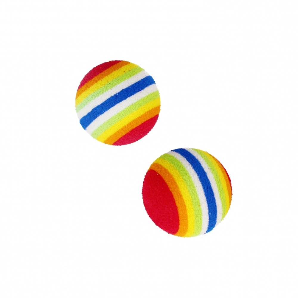 Dwie lekkie piankowe piłeczki z tęczowym wzorem są łagodne dla wnętrz i odpowiednie do bezpieczniejszej zabawy.