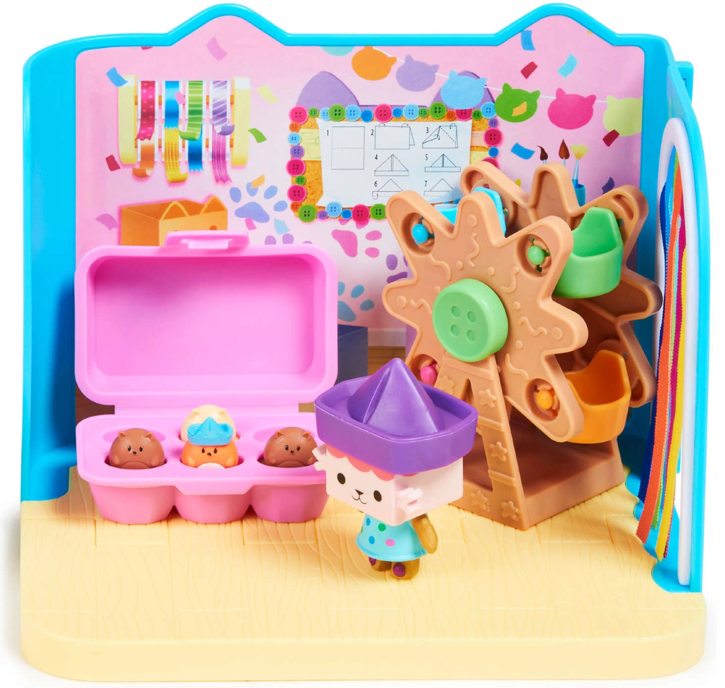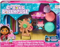 Zestaw „Baby Box Craft-a-riffic Room” to oryginalny element systemu zabawy Gabby’s Dollhouse – można go używać samodzielnie lub połączyć z dużym domkiem.