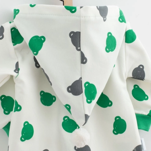 Uroczy i praktyczny kombinezon z kapturem NEW BABY Little One zachwyca komfortem i stylem. Ma całopowierzchniowy nadruk misiów, zamek na całej długości dla łatwego ubierania, elastyczne ściągacze oraz miękką dresówkę odpowiednią do całorocznego noszenia.