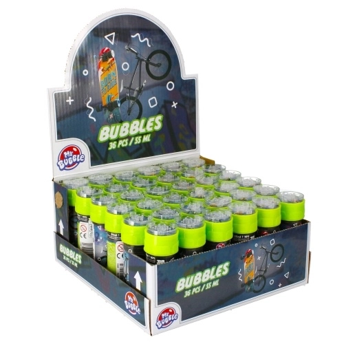 Bańki mydlane BMX Skate 55 ml przynoszą mnóstwo radości podczas puszczania tęczowych baniek. Dzięki wysokiej jakości płynowi tworzą stabilne, lśniące bańki, świetne do ogrodu, na plac zabaw i dziecięce przyjęcia. Każda nakrętka dodatkowo zawiera zabawną grę kulkową z labiryntem, więc o rozrywkę zadbano także w przerwach.