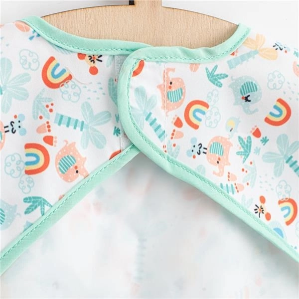 Zapięcie na rzep ułatwia szybkie zakładanie i zdejmowanie, a miękka przednia kieszeń zatrzymuje okruszki i kropelki. Fartuszek sprawdzi się przy karmieniu, samodzielnym jedzeniu oraz przy kreatywnych aktywnościach. Nowoczesne wzory i zielony kolor spodobają się dzieciom i rodzicom.