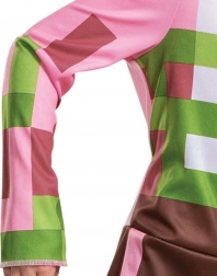 Zestaw zawiera maskę i kombinezon z wyrazistym wzorem pixel‑art – idealny na karnawał i cosplay.