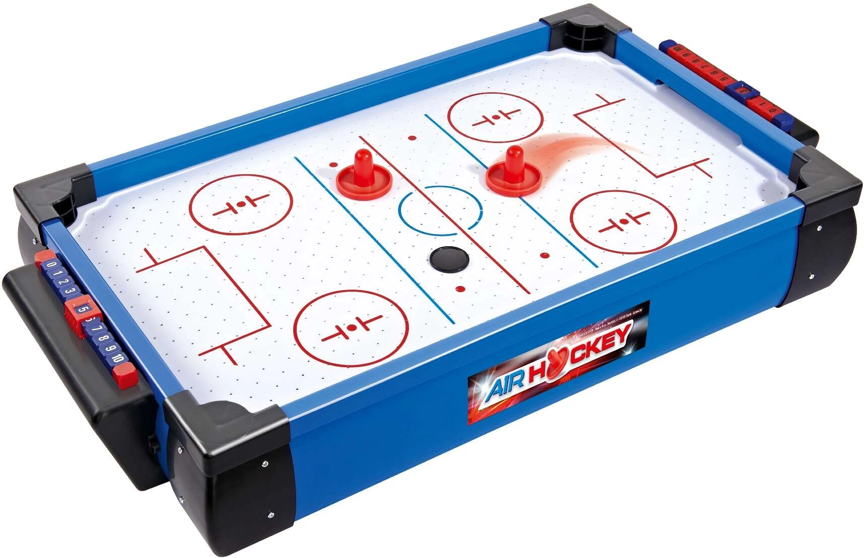 - Zawartość opakowania: mini stół do air hockeya, 2 małe czerwone odbijaki, 2 małe krążki, instrukcja montażu