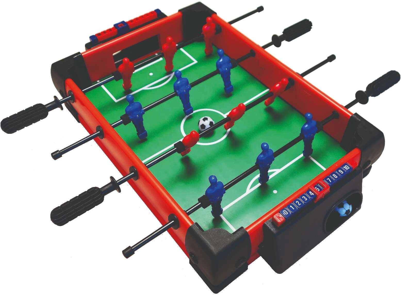 Dzięki kompaktowym wymiarom 50 × 30 cm piłkarzyki zmieszczą się na stole w pokoju dziecięcym i w salonie. 12 zawodników na prętach i 2 przesuwni bramkarze umożliwiają szybką grę, a uchwyty obracają się o 360° dla precyzyjnych strzałów i podań. Licznik punktów pomaga kontrolować wynik każdego meczu.