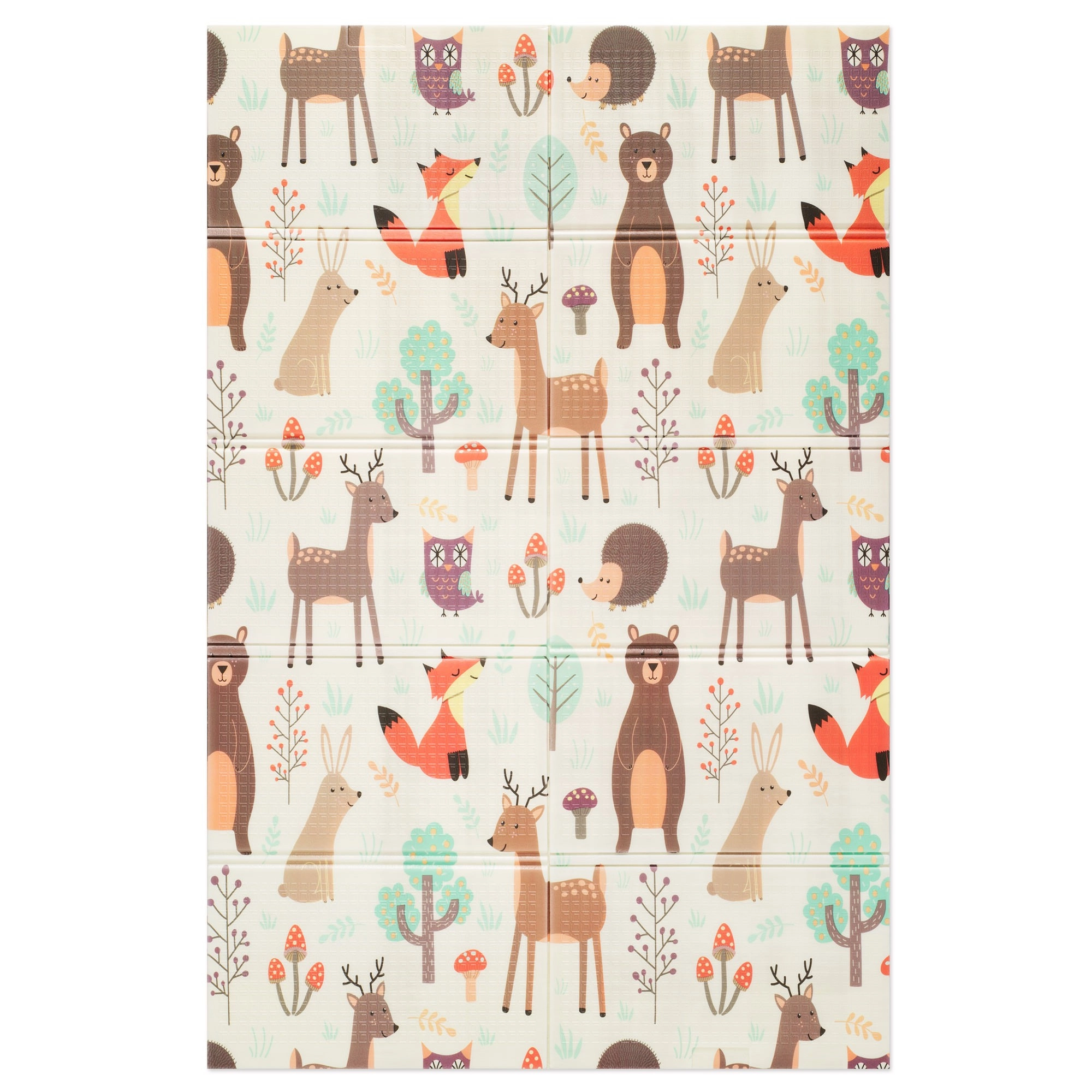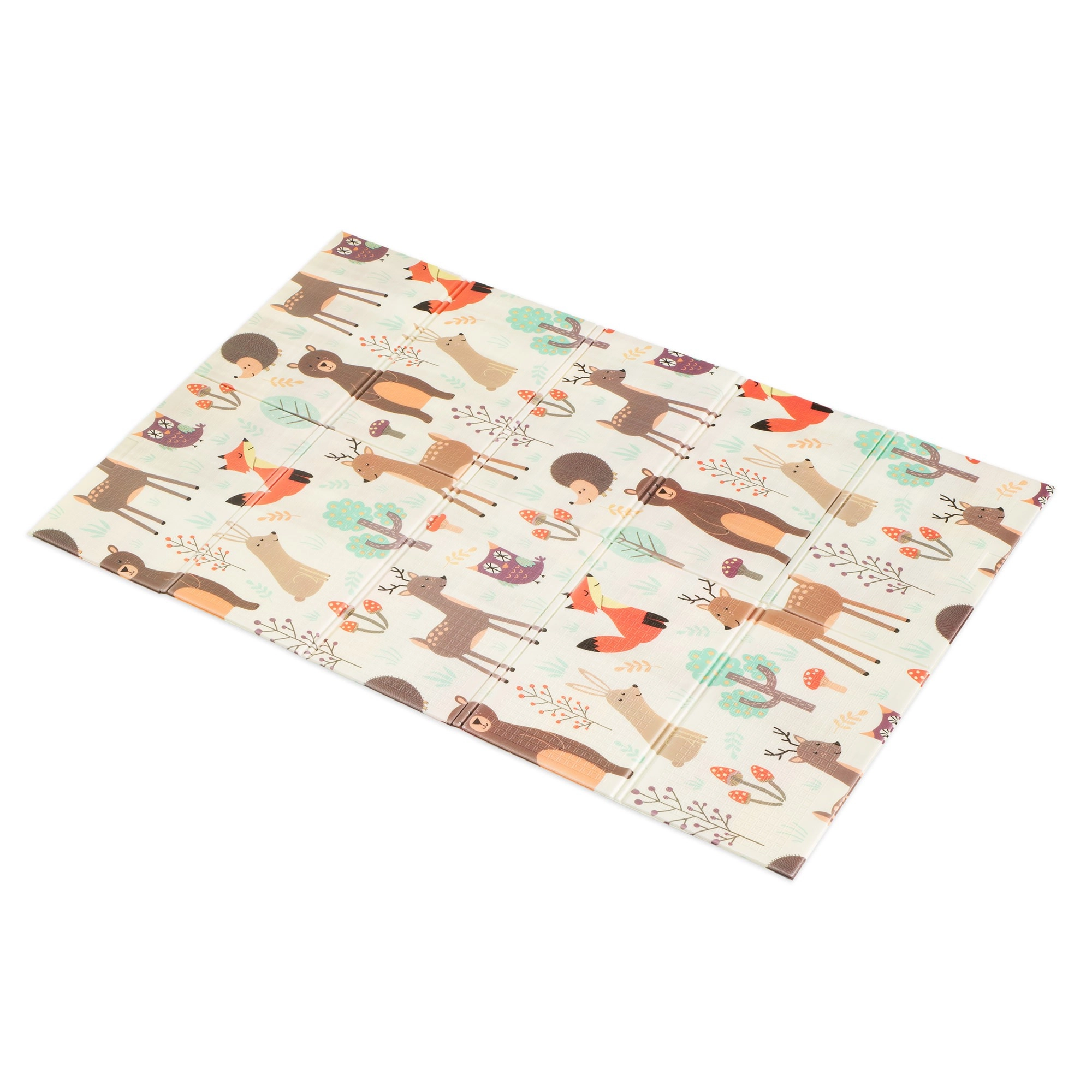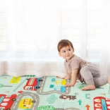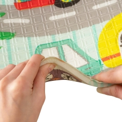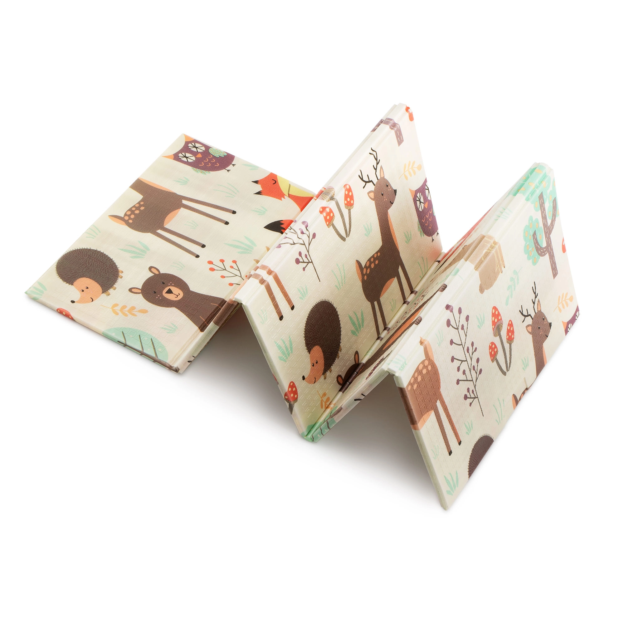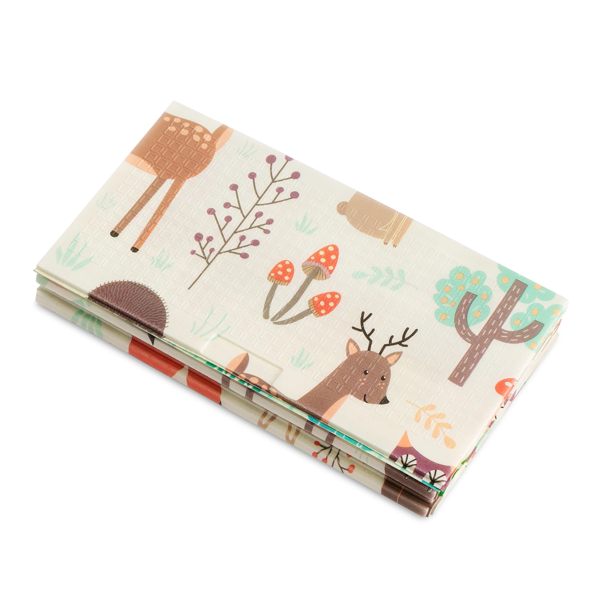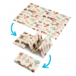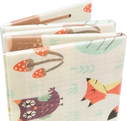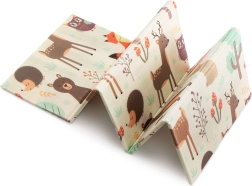 Mata jest dwustronna – z jednej strony uroczy leśny motyw, z drugiej drogi i budynki do pomysłowej zabawy. Dzięki składanej konstrukcji w kilka sekund ją rozłożysz lub złożysz i schowasz do torby z zamkiem i uchwytami. Odpowiednia do pokoju dziecięcego, salonu, a także do ogrodu czy na piknik.
