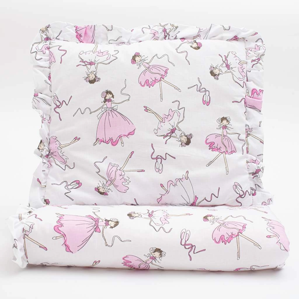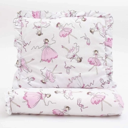 Uroczy bawełniany zestaw do wózka New Baby Ballerina Bella zapewnia Twojemu maluszkowi komfort i ciepło. Zawiera poduszeczkę i kołderkę z falbanką oraz nadrukiem baletki, wypełnione antyalergicznym włóknem. Uszyty z wysokiej jakości 100% bawełny, która jest delikatna dla wrażliwej skóry i łatwa w pielęgnacji.
