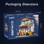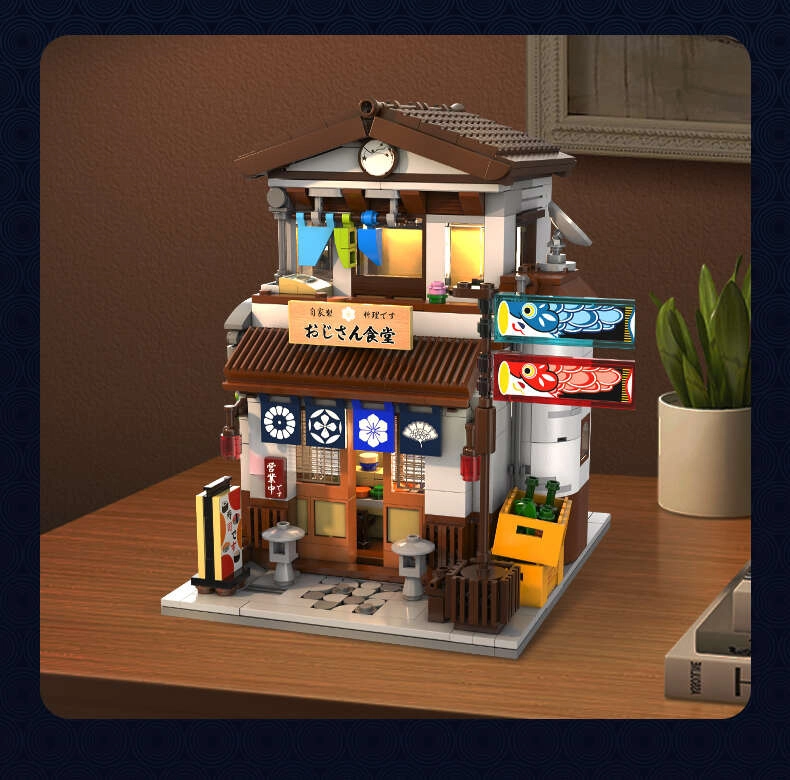 Model jest pełen rekwizytów: szyld, baner z karpiami koi, skrzynka na butelki, hydrant, rura spustowa, pnące rośliny i inne dodatki. Ruchome części, takie jak otwierane drzwi, zwiększają grywalność i autentyczność. Zestaw jest idealny dla osób, które kochają kreatywne projekty manualne i chcą poprawić koncentrację oraz wyobraźnię.